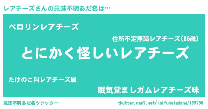 | 男性向けラノベタイトル風あだ名 | 『うちのレアチーズが世界を掌握している!』 |