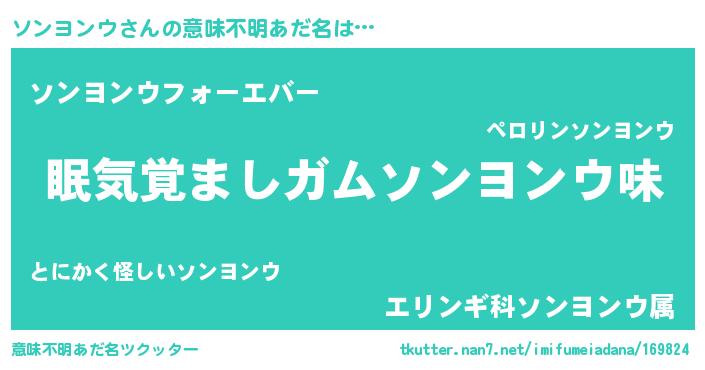 | 自動車の名前っぽいあだ名 | 『ソンR』『ソスラー』『ソンティマ』 |