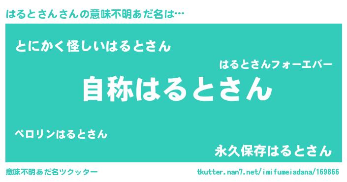 | 男性向けラノベタイトル風あだ名 | 『Re:はるとさんから始める異世界生活』 |