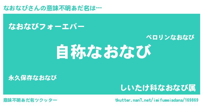 | 男性向けラノベタイトル風あだ名 | 『Re:なおなびから始める異世界生活』 |