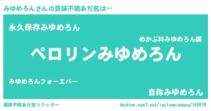| 女子向けラノベタイトル風あだ名 | 『(仮)みゆめろんのやんごとなき事情』 |