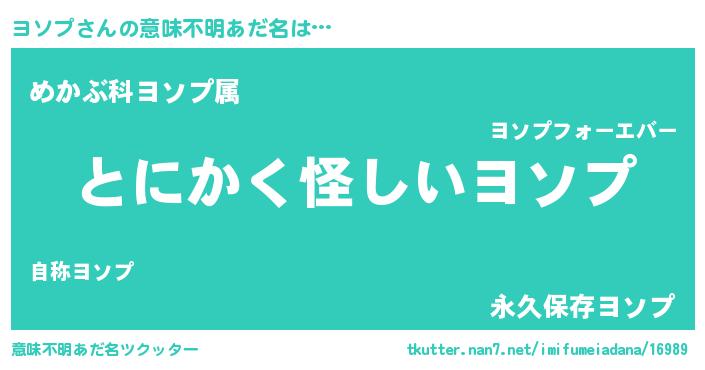| ファンタジー風あだ名 | 『ファントムヨソス』『ユリヨソヴァット』 |