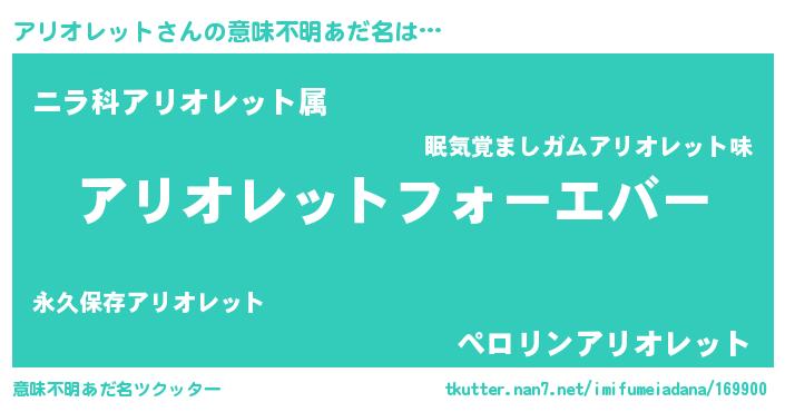 | 女子向けラノベタイトル風あだ名 | 『アリオレットの雑貨屋さん』 |