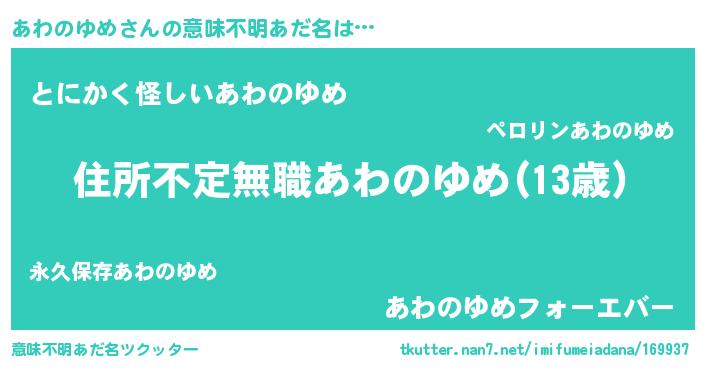 | 女子向けラノベタイトル風あだ名 | 『乙女ゲームの破滅フラグしかない悪役あわのゆめに転生してしまった…』 |