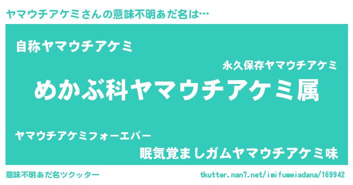 | 男性向けラノベタイトル風あだ名 | 『ヤマウチアケミスレイヤー』 |