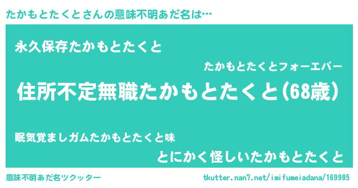 | 伝説のあだ名 | 『聞きしに勝る暗殺者たかもとたくと』 |
