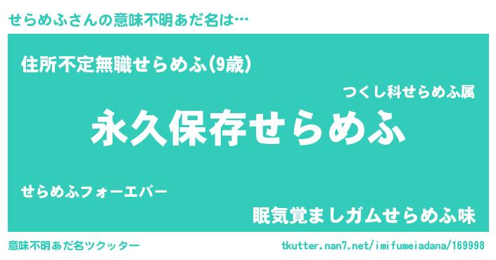 | ヘコむあだ名 | 『せらめふ(小並感)』『つくし』 |