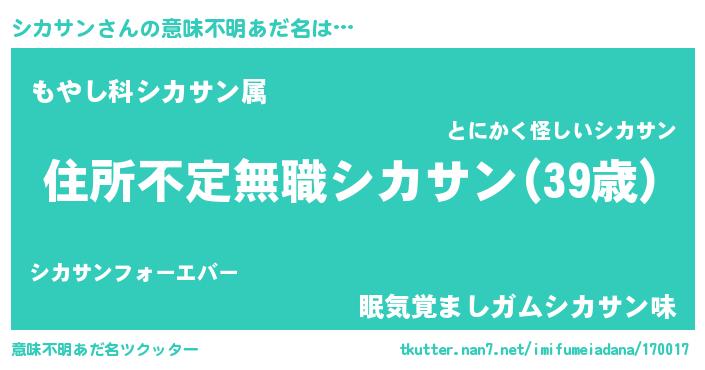 | ヒーロー風カッコイイあだ名 | 『仮面シカダー』『慈愛の使者シカサン』 |