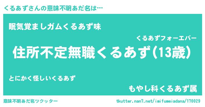 | 女子向けラノベタイトル風あだ名 | 『乙女ゲームの破滅フラグしかない悪役くるあずに転生してしまった…』 |