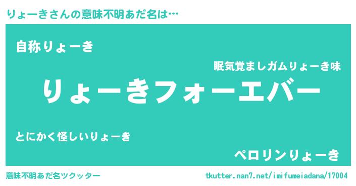 | ヒーロー風カッコイイあだ名 | 『ウルトラりょーきマン』『幻影騎士リョ』 |