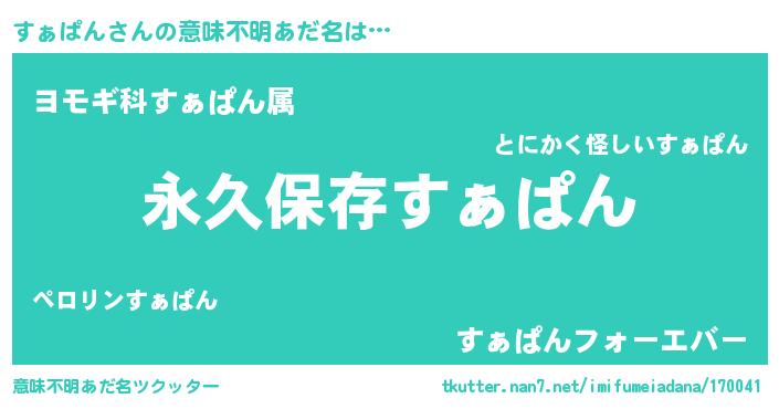 | 胡散臭い通販商品みたいなあだ名 | 『絶対に幸福をもたらす水素水…その名も「すぁぱん」』 |
