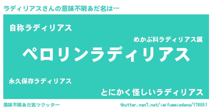 | 胡散臭い通販商品みたいなあだ名 | 『必ず成功する水晶球…その名も「ラディリアス」』 |