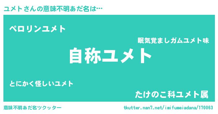 | ヘコむあだ名 | 『ユメふぇ~』『ユメっ子』『つくし』 |