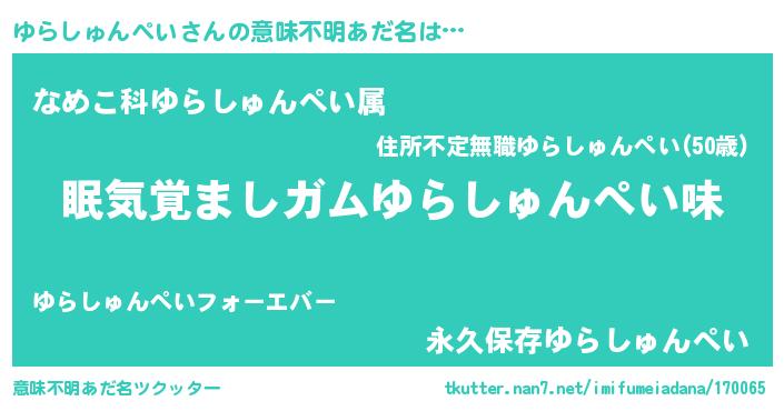 | 男性向けラノベタイトル風あだ名 | 『ノーゲーム・ノーユラシュンペイ』 |