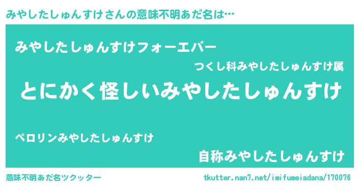 | ポケモン風あだ名 | 『ヒミヤシタシュンスケ』『ミヤシダネ』 |