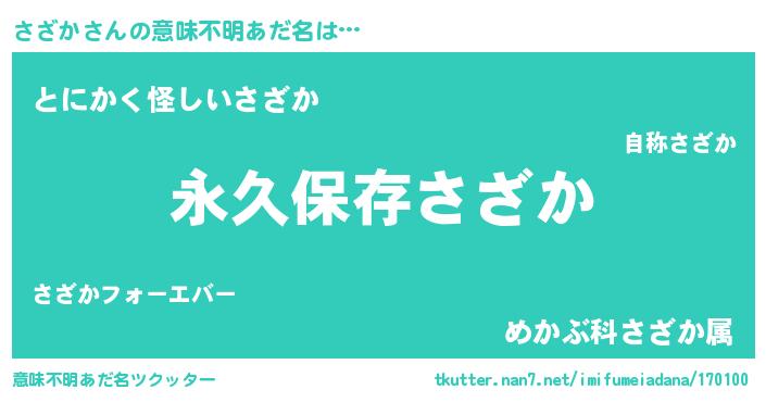 | 欧米人風あだ名 | 『ダルビッシュさざか』『ウサインさざか』 |