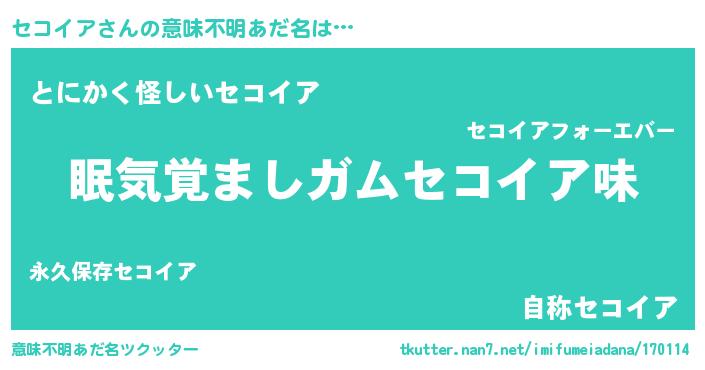 | 女子向けラノベタイトル風あだ名 | 『セコイア恋絵巻』『セコイア様がみてる』 |