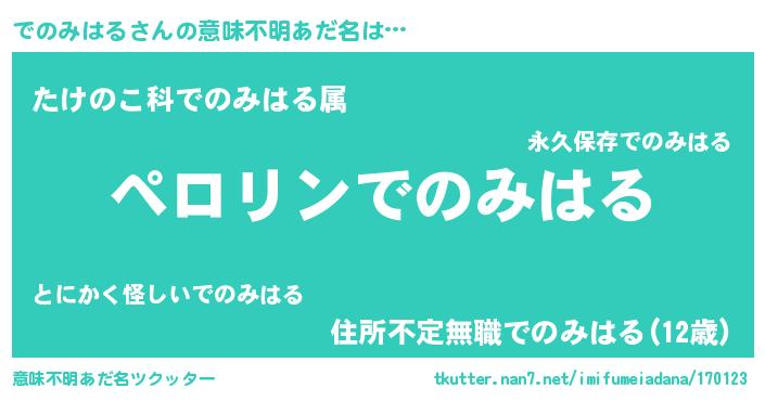 | 胡散臭い通販商品みたいなあだ名 | 『必ず成功するブレスレット…その名も「でのみはる」』 |