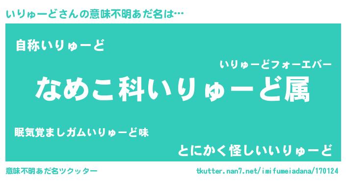 | 料理風あだ名 | 『いりゅーどごはん』 |