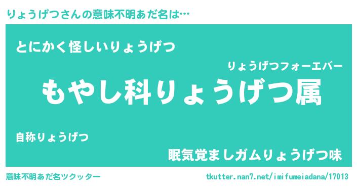 | ポケモン風あだ名 | 『リョキング』『ヒリョウゲツ』 |