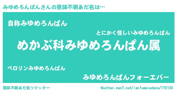 | 料理風あだ名 | 『みゆめろんぱんごはん』 |