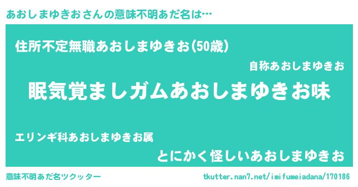 | ヘコむあだ名 | 『あおっぺ』『あおしまゆきお(笑)』 |