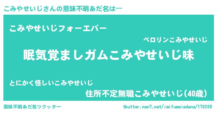 | 胡散臭い通販商品みたいなあだ名 | 『お金では代えられないマグネット磁石…その名も「こみやせいじ」』 |