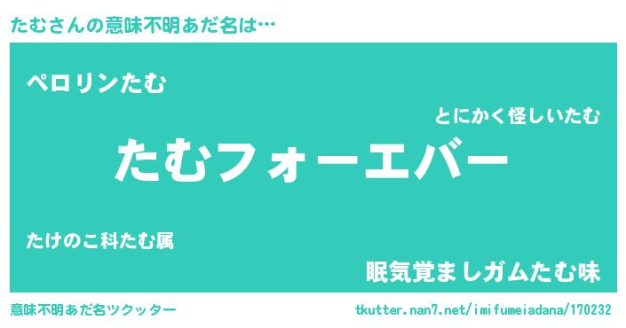 | ポケモン風あだ名 | 『メロタッム』『タムダネ』 |