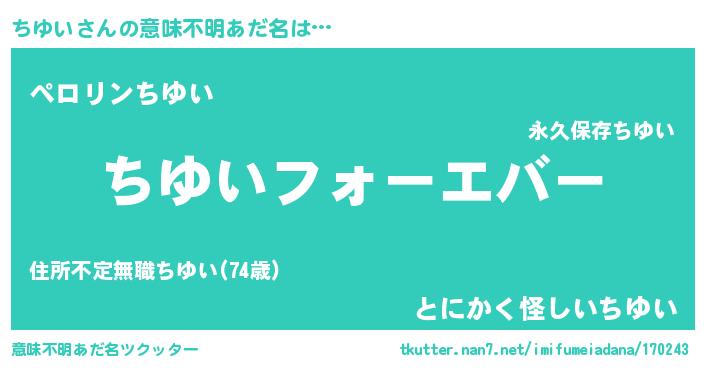 | ファンタジー風あだ名 | 『エターナルチユイー』『チユフェル』 |