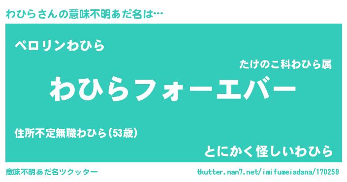 | ヒーロー風カッコイイあだ名 | 『ウルトラわひらマン』『スーパーワヒラ』 |