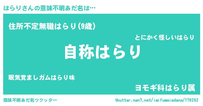 | 胡散臭い通販商品みたいなあだ名 | 『芸能人もオススメする高麗人参…その名も「はらり」』 |
