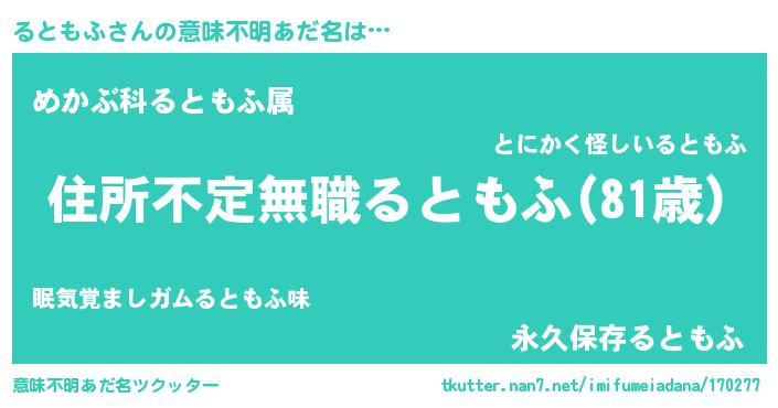 | ヘコむあだ名 | 『るともふ(震え声)』『るとお』 |
