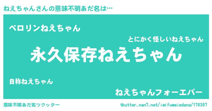 | 胡散臭い通販商品みたいなあだ名 | 『絶対に幸福をもたらす健康食品…その名も「ねえちゃん」』 |
