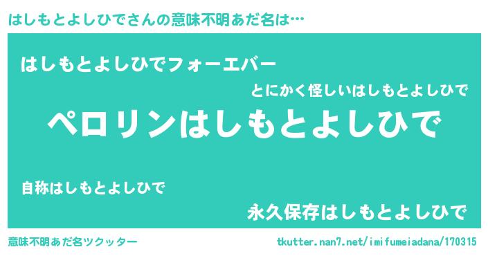 | 肩書あだ名 | 『はしもとよしひで御曹司』 |