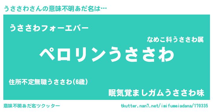 | ポケモン風あだ名 | 『ウサチュウ』『ウササダネ』 |