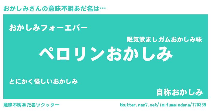| 男性向けラノベタイトル風あだ名 | 『おかしみの憂鬱』 |