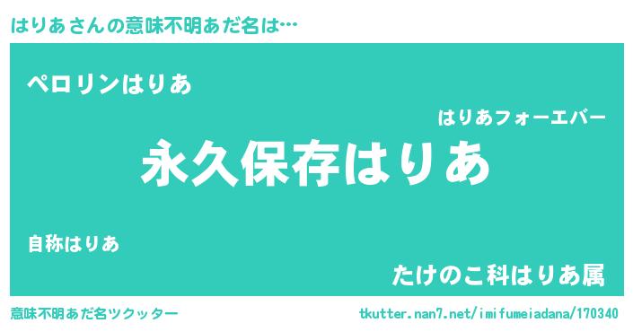 | ヘコむあだ名 | 『はりあ(震え声)』『はりにゅー』 |