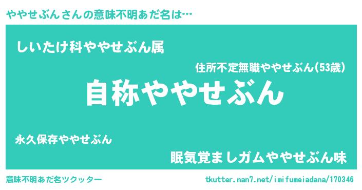 | ヘコむあだ名 | 『ややせぶん(震え声)』『ややっふぃ~』 |