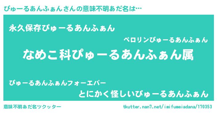 | 胡散臭い通販商品みたいなあだ名 | 『来世でも幸せになれる水素水…その名も「ぴゅーるあんふぁん」』 |