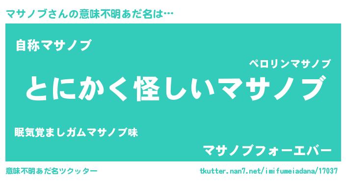 | 女子向けラノベタイトル風あだ名 | 『マサノブは平凡を望む』 |