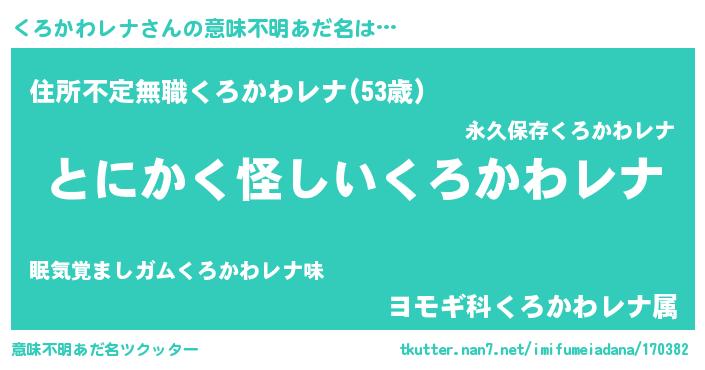| ポケモン風あだ名 | 『ヒクロカワレナ』『クーロイ』 |