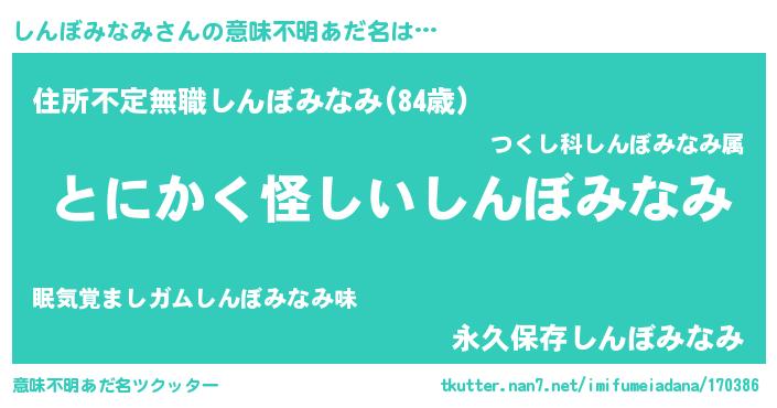 | 胡散臭い通販商品みたいなあだ名 | 『伝統あるサプリメント…その名も「しんぼみなみ」』 |