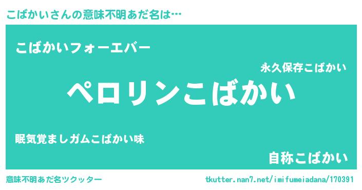 | 胡散臭い通販商品みたいなあだ名 | 『モテモテ間違いなし霊験あらたかなお札…その名も「こばかい」』 |