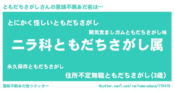 | 料理風あだ名 | 『ともだちさがしとほうれんそうの和風グラタン』 |