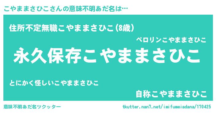 | ヘコむあだ名 | 『こやままさひこ(遠い目)』『こやもー』 |