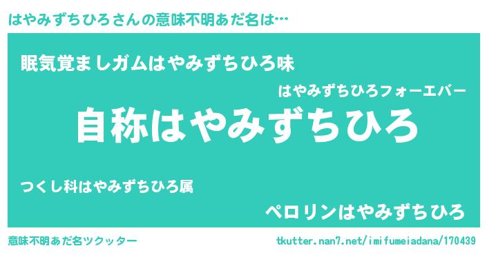 | 男性向けラノベタイトル風あだ名 | 『Re:はやみずちひろから始める異世界生活』 |