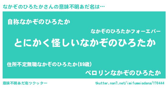 | ポケモン風あだ名 | 『ヒナカゾノヒロタカ』『ナカセウス』 |