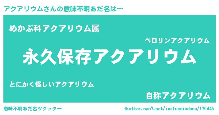 | 胡散臭い通販商品みたいなあだ名 | 『来世でも幸せになれる水素水…その名も「アクアリウム」』 |
