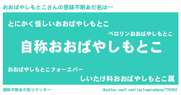 | 男性向けラノベタイトル風あだ名 | 『おおばやしもとこに滅ぼされるだけの簡単なお仕事です』 |