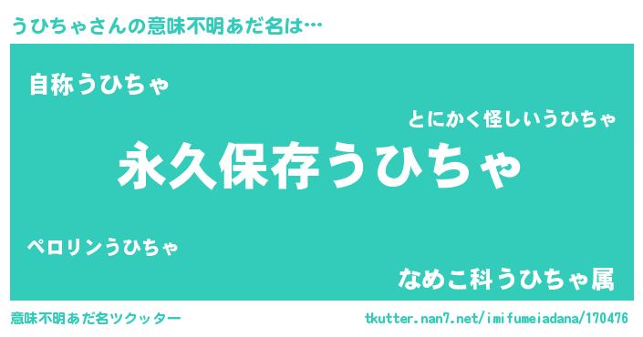 | 胡散臭い通販商品みたいなあだ名 | 『絶対に幸福をもたらす水素水…その名も「うひちゃ」』 |